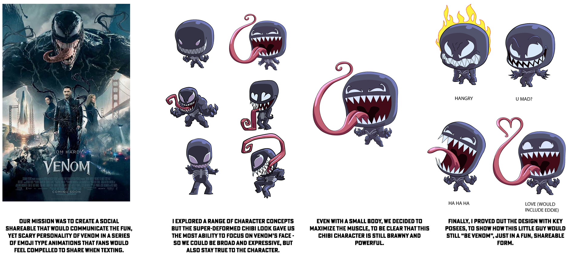 CASE STUDY: Translating the essence of Venom into a "Chibi" character for a social marketing initiative.